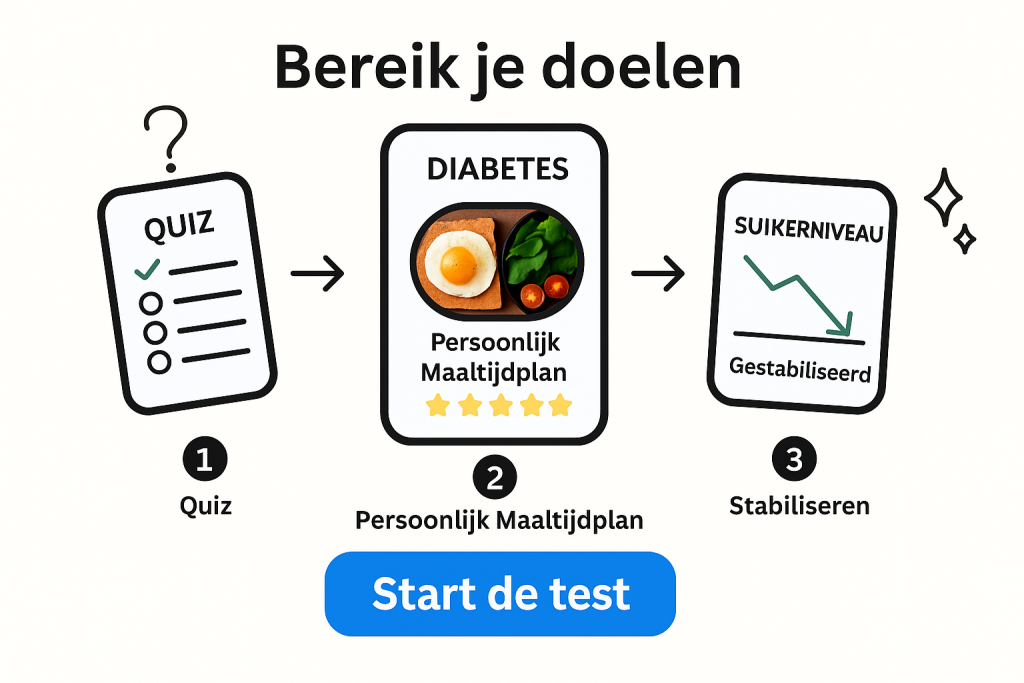 Door een persoonlijk aangepast koolhydraatarm plan te volgen, vermijd je de sterke bloedsuikerschommelingen die typisch zijn voor een standaard dieet. Je lichaam krijgt in plaats daarvan een stabiele energietoevoer, gebaseerd op vetten en eiwitten. Dat zorgt niet alleen voor meer vetverbranding, maar helpt ook om je bloedsuiker onder controle te krijgen — en mogelijk zelfs je diabetes om te keren
